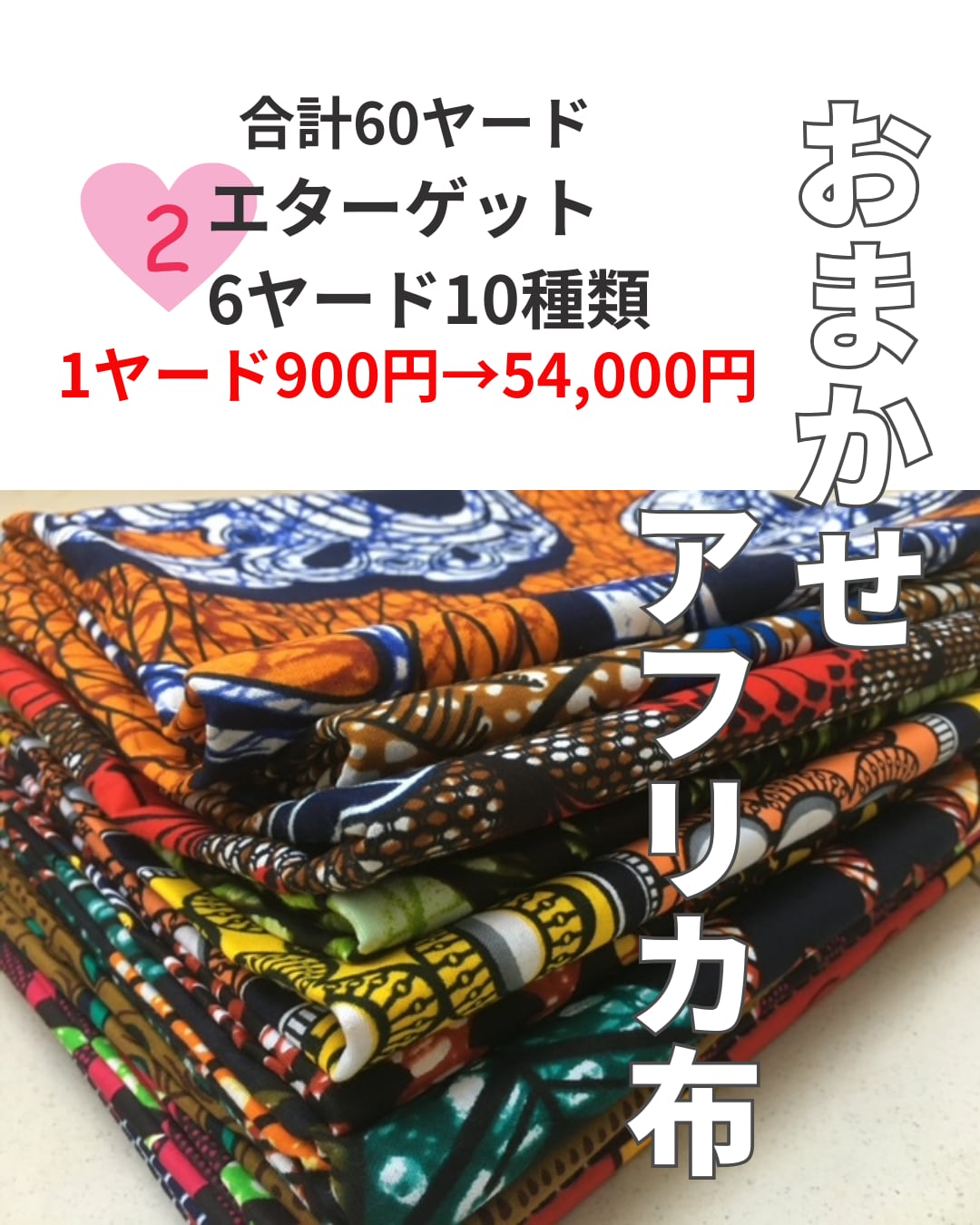 【アフリカプリント布エターゲットおまかせ6ヤード10種類】送料無料